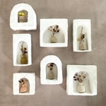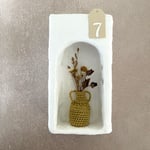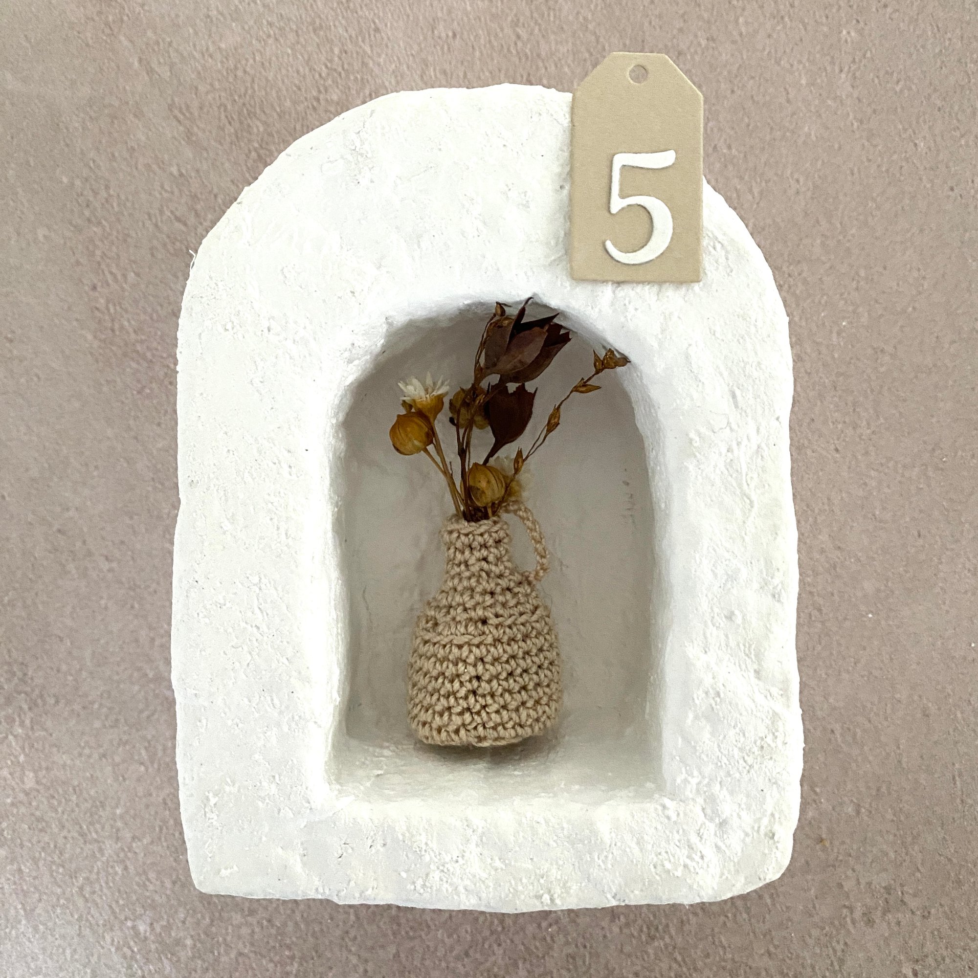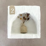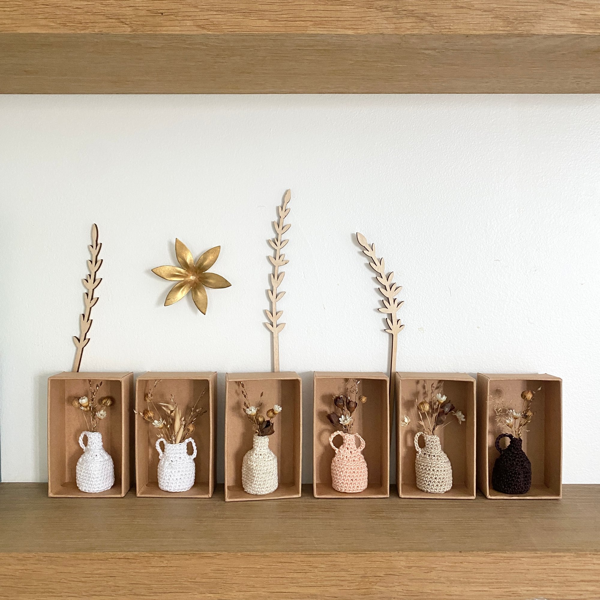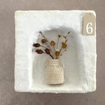 Mini vases en coton comme des petites amphores grecques transportant de petits bouquets de fleurs séchées. A laisser dans leur boîte ou à accrocher.